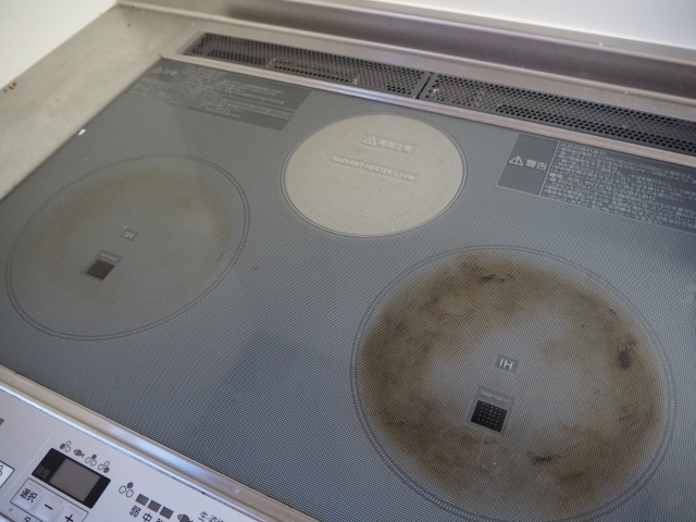 五徳にこびりついた食品汚れは、吹きこぼれたとき一拭き。そのままにすれば、錆びてしまいます。魚焼きの内部、本体の内部については細かい配管があり安全のため完全にはクリーニングできません。
