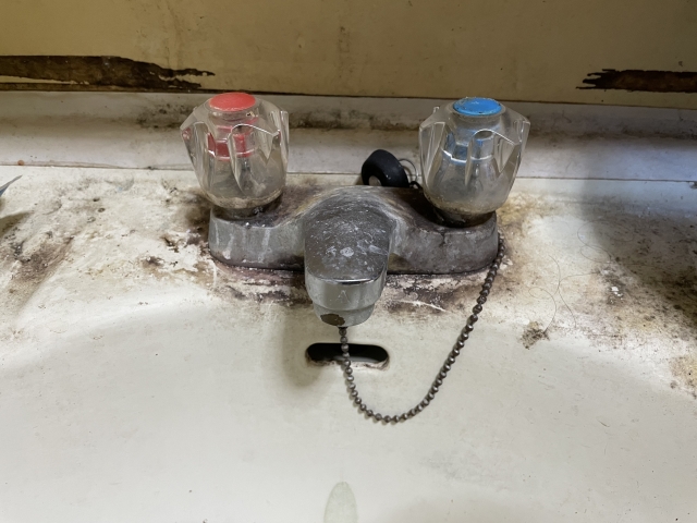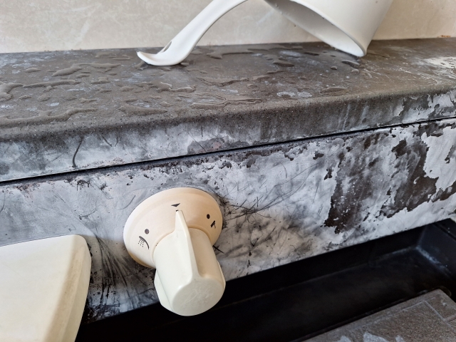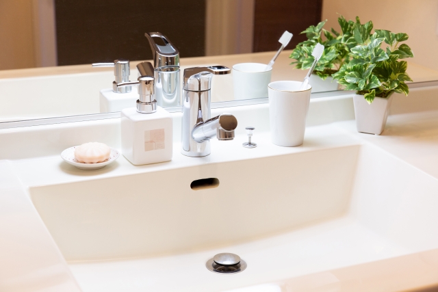 洗面台、特に蛇口周辺には水垢をたくさん見かけます。